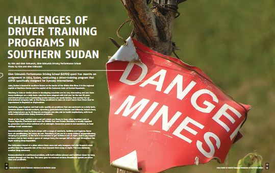 ISDA Advisory Board Member, Glen Edmunds, spent five months on assignment in Juba Sudan conducting driver-training. His Company Glen Edmunds Performance Driving School designed the program specifically the SPLA (Sudanese Peoples Liberation Army). The training was conducted on behalf of DynCorp International.